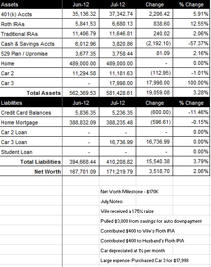 July 2012 Net Worth Update (+3,518.70)